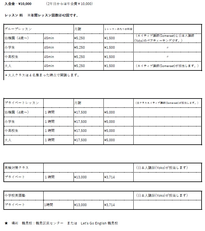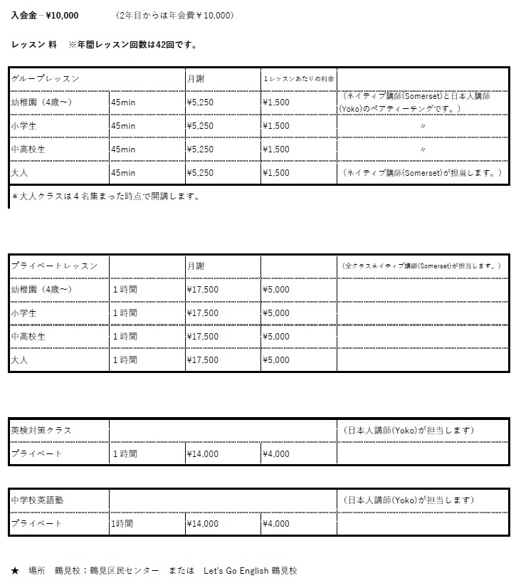 Let's Go English 大阪市鶴見区&生駒市あすか台の子ども英会話教室
